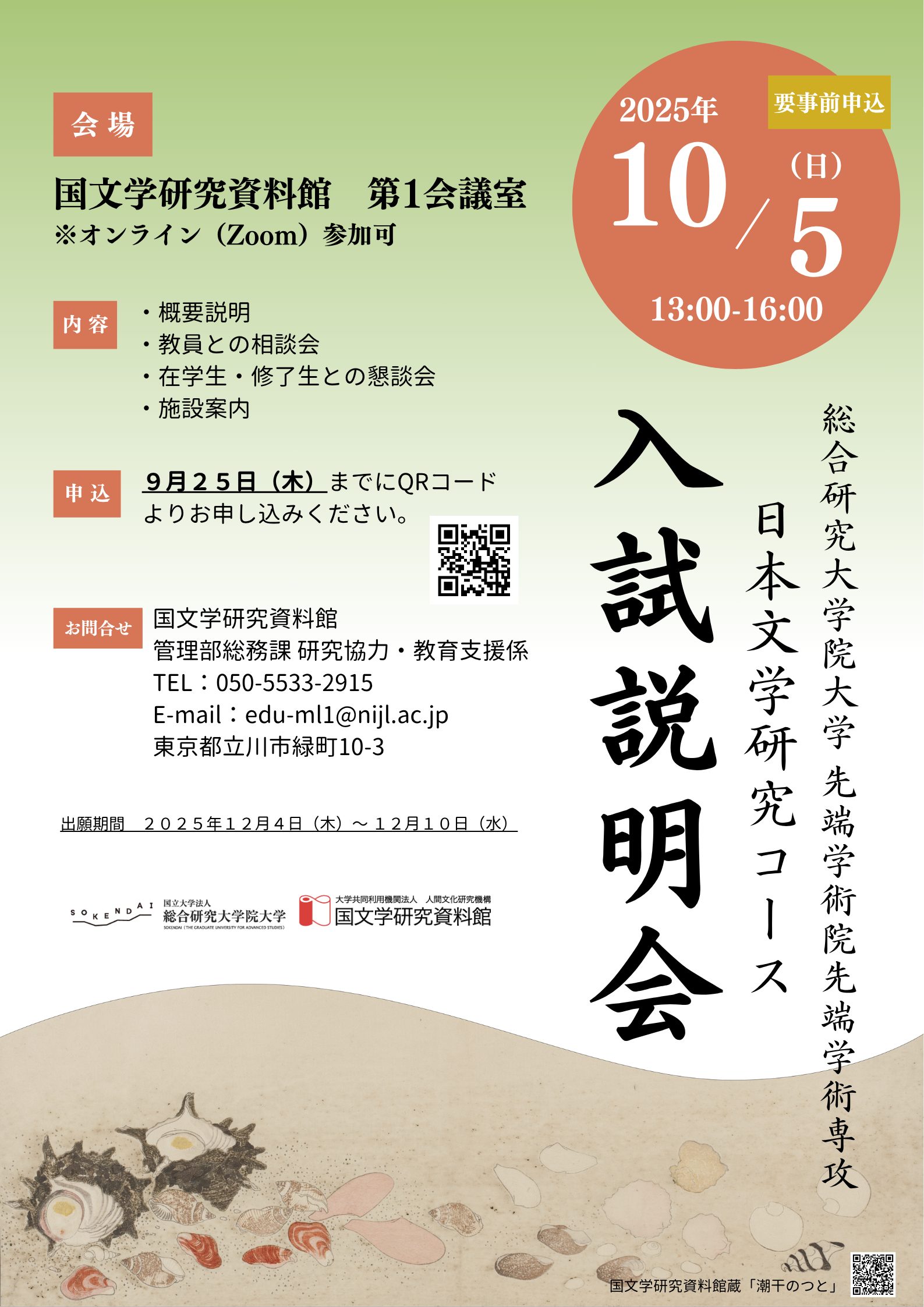 総合研究大学院大学 先端学術院先端学術専攻 日本文学研究コース 入試説明会開催について