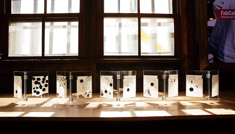 江戸時代の絵師鍬形惠斎の絵手本『略画式シリーズ』と上田秋成作『雨月物語・夢応の鯉魚』をモチーフにした、短編アニメーション「ゆめみのえ」を制作。