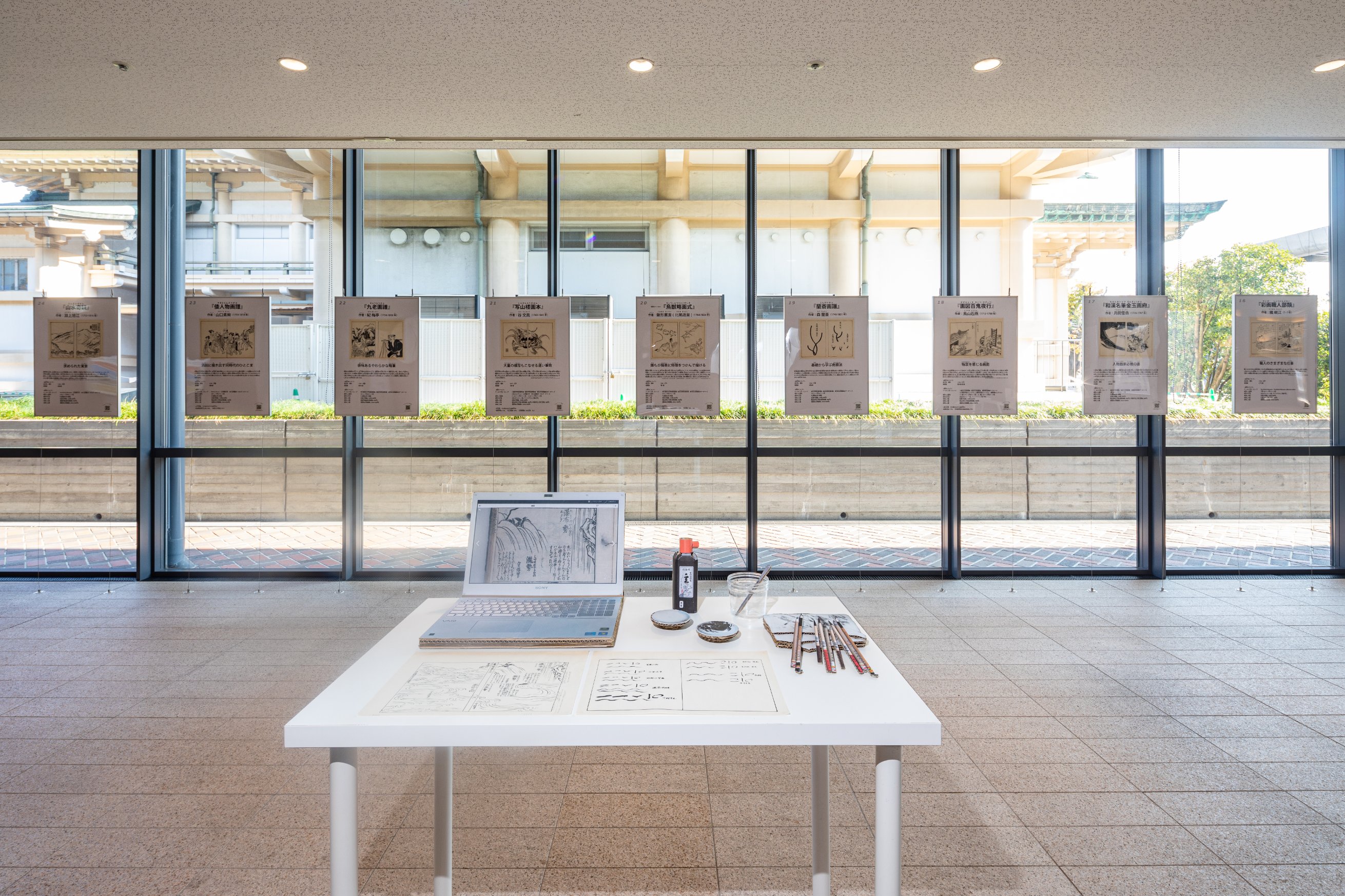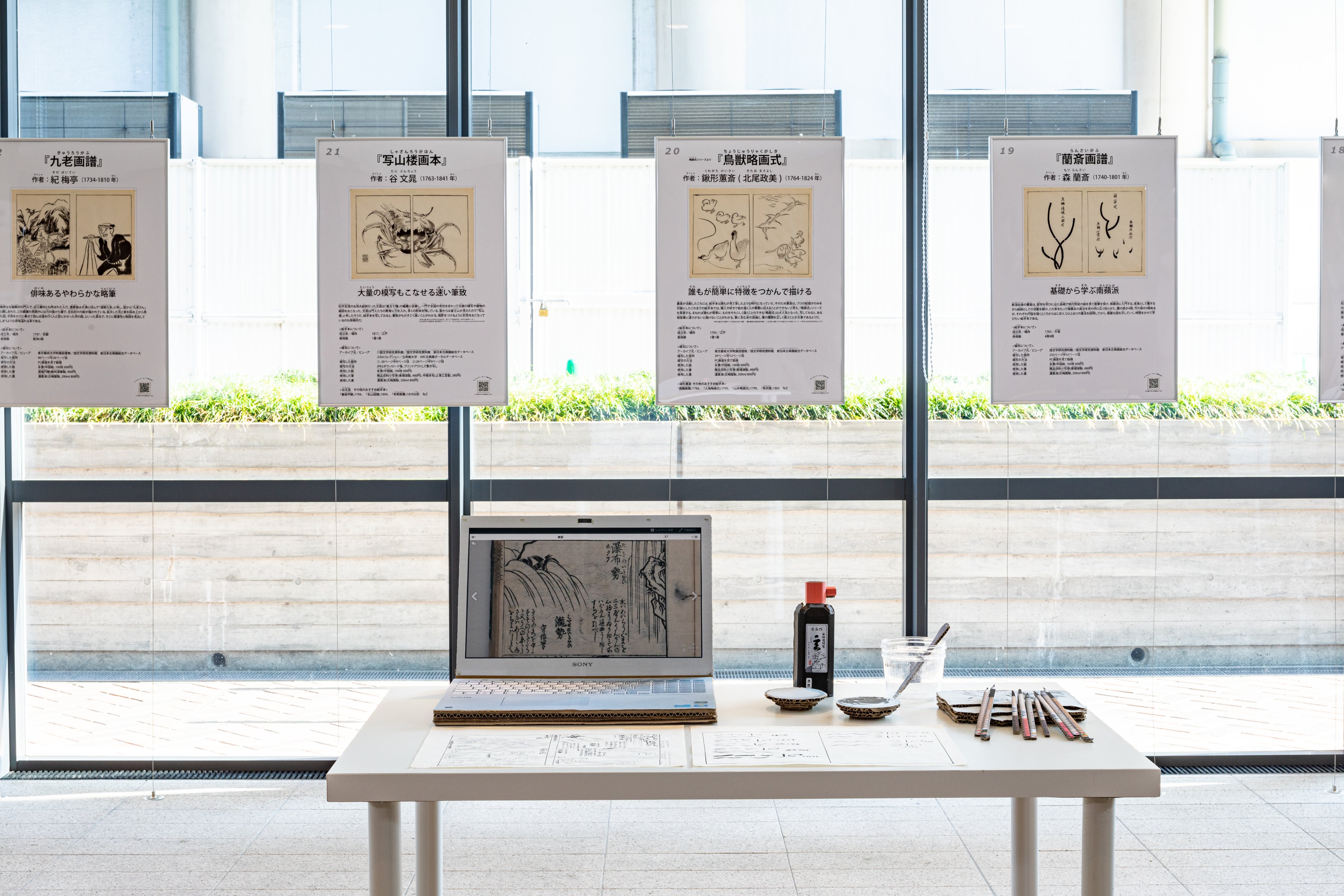 50点の模写作品のうち、2点をポスター形式で展示、他は束状でご覧いただきます。