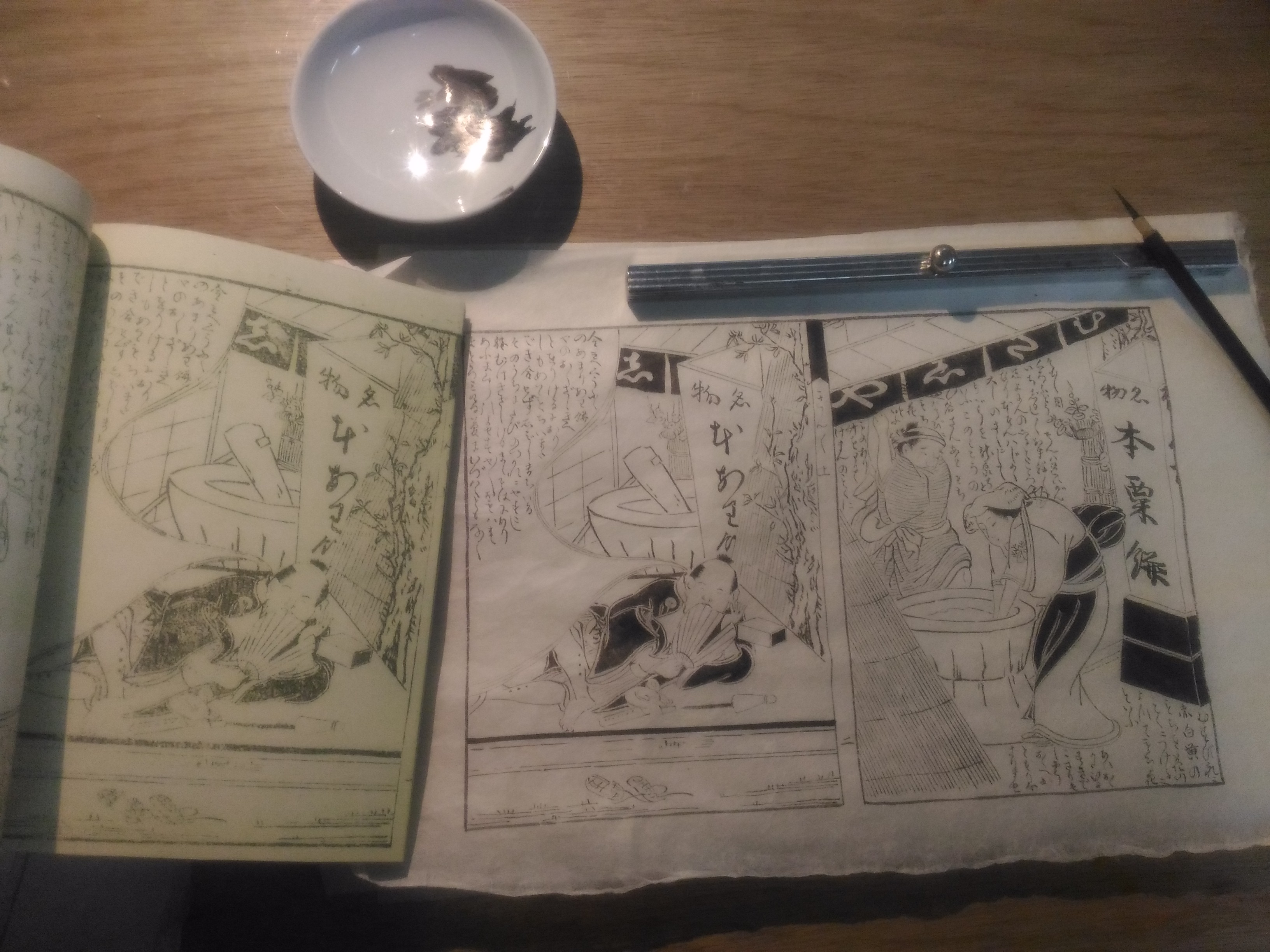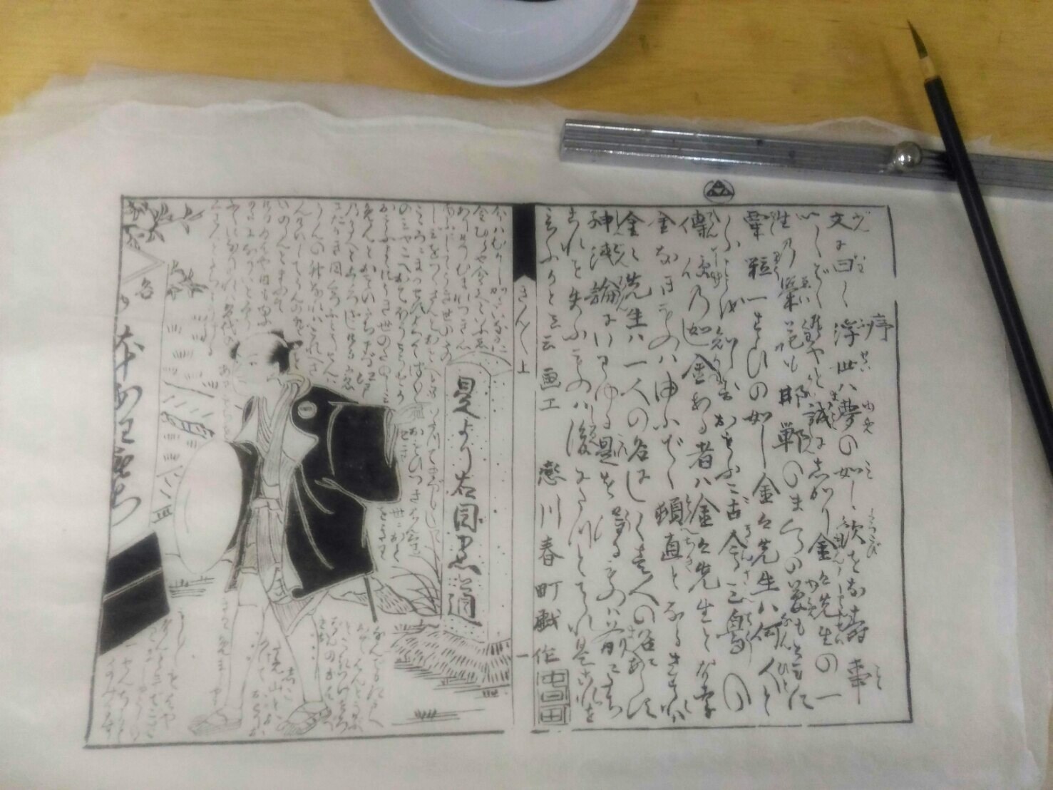 まず松平さんが挑戦したのは、黄表紙金々先生栄花夢の模写。