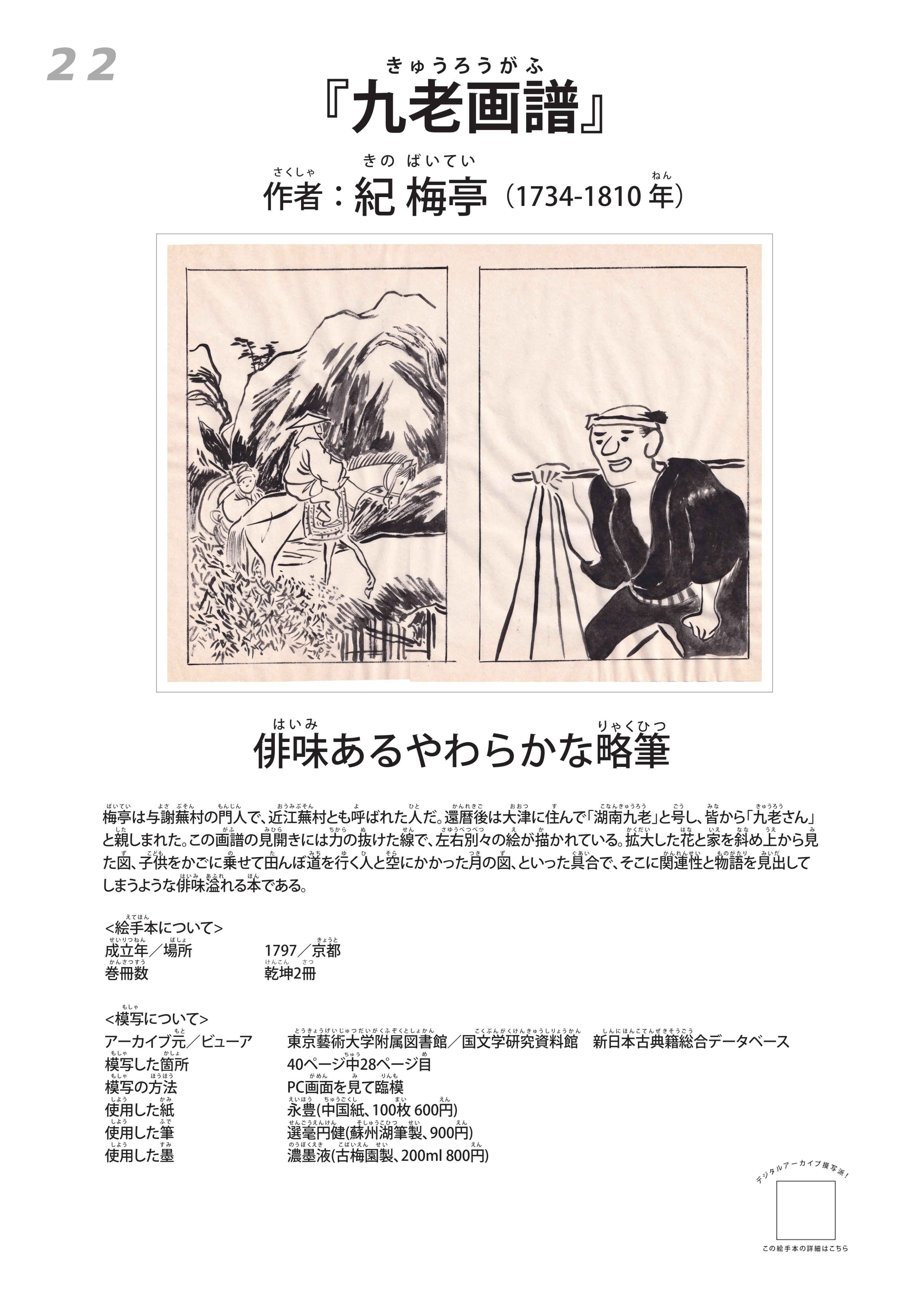 絵の教科書である絵手本を、デジタルアーカイブの海から探し出し、リスト化し、画面上で模写を行うデジタルアーカイブ模写の提唱も。